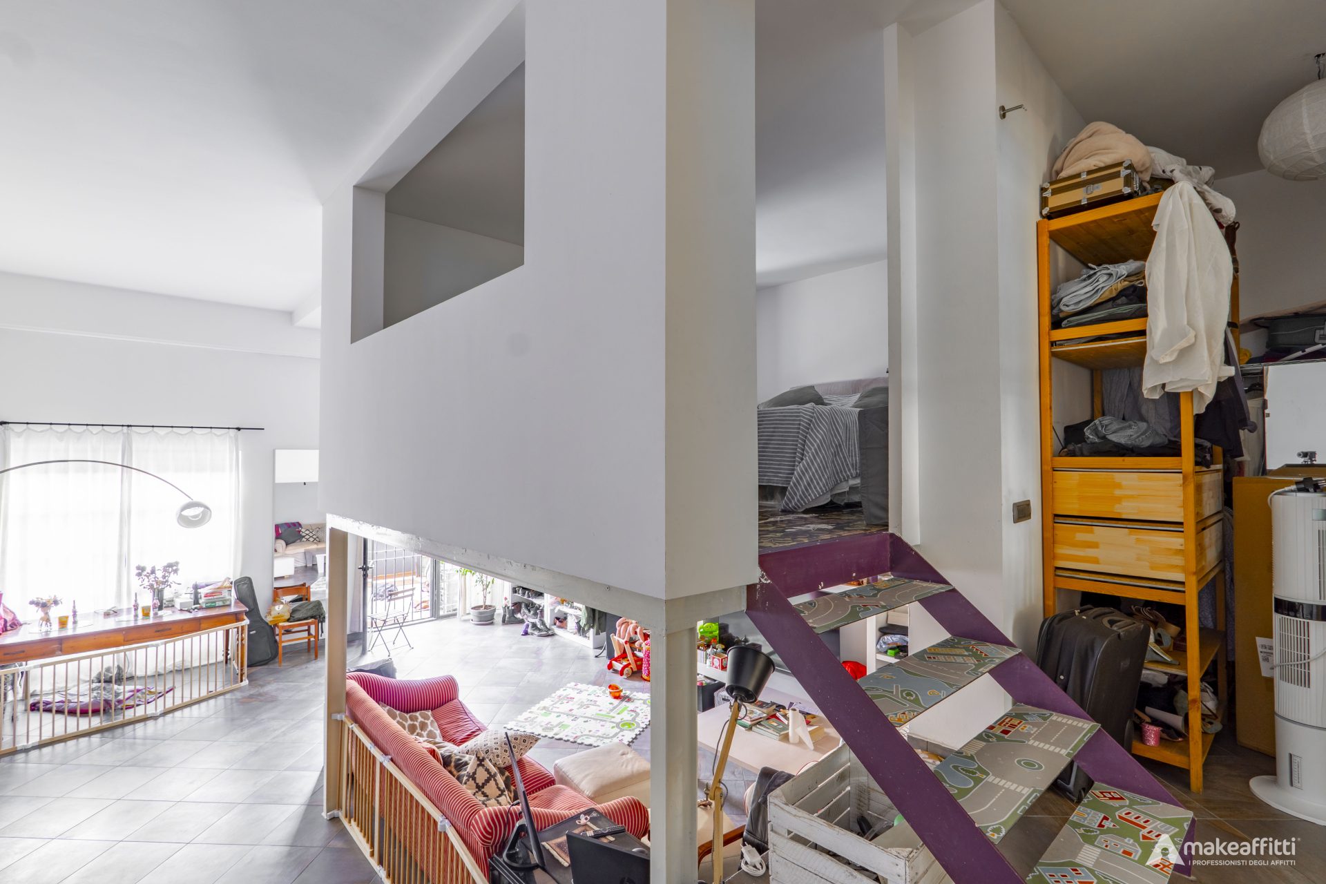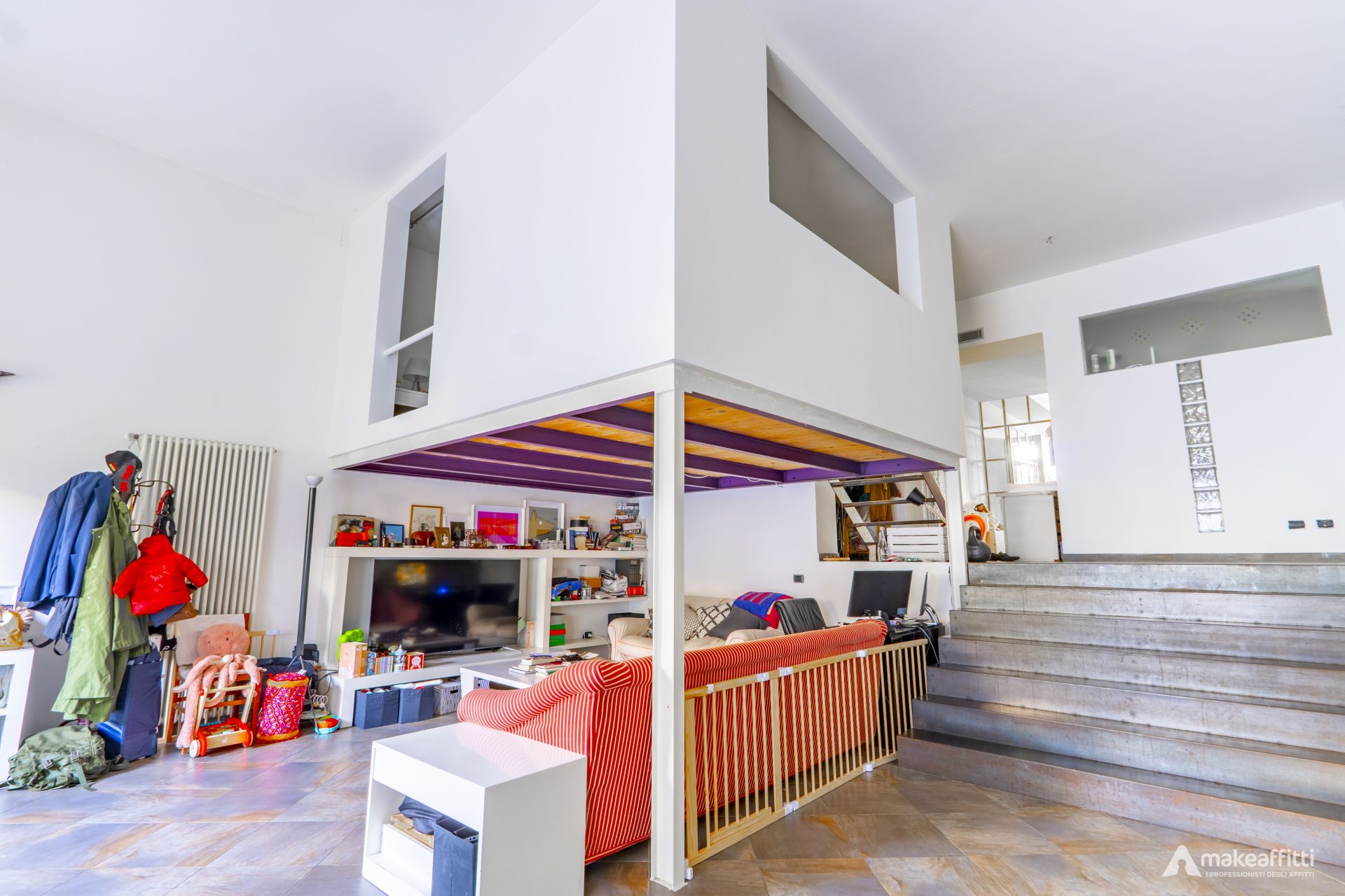 MILANO: proponiamo loft di due locali parzialmente arredato posto al piano primo, composto da ingresso, soggiorno, cucina abitabile, camere matrimoniale su soppalco, servizi, balcone e terrazzino. Compreso posto auto di pertinenza.
