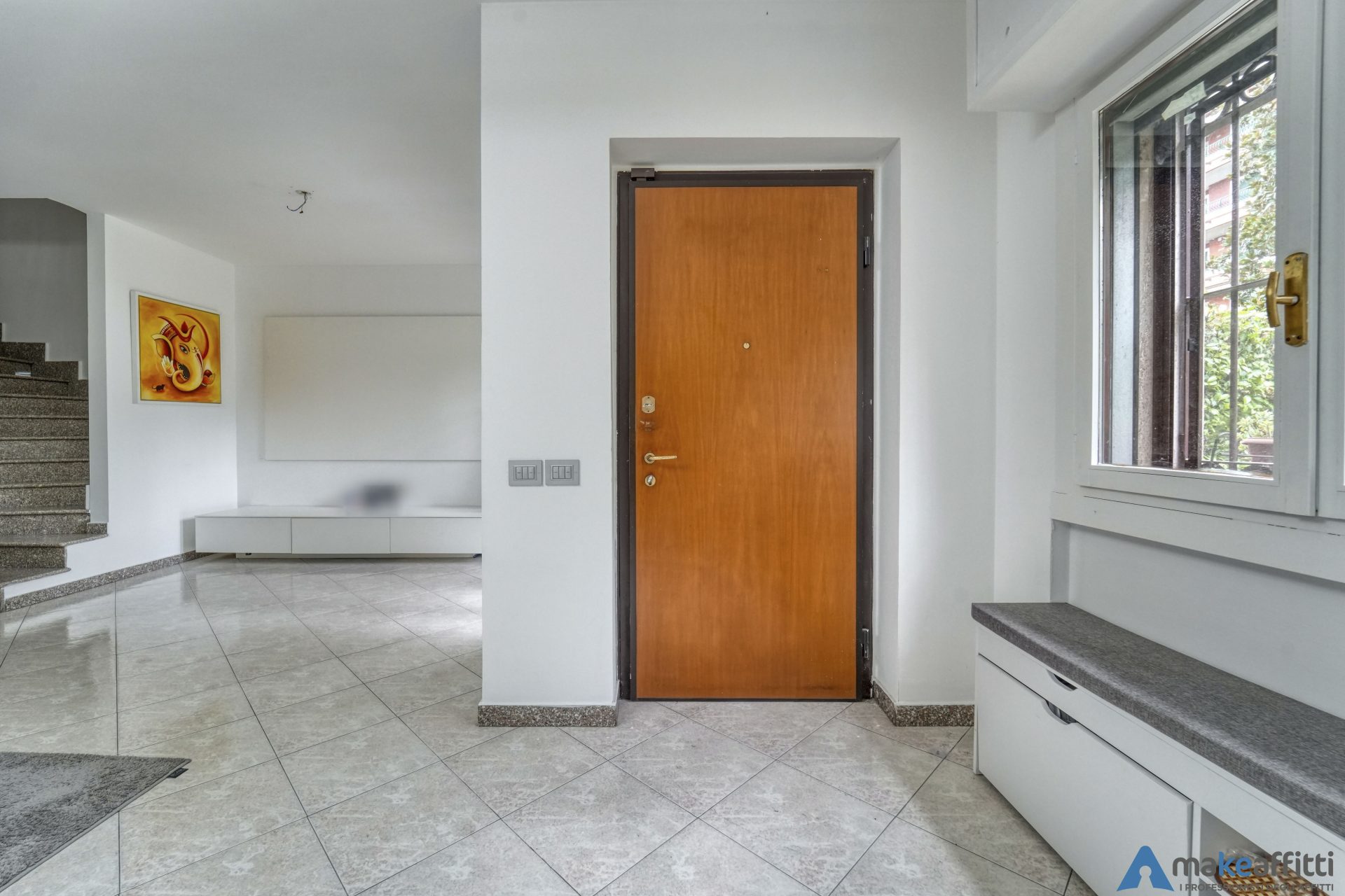 In una delle zone più residenziali di Segrate caratterizzato dalla presenza di numerose case indipendenti e comoda per la vicinanza a tutti i principali servizi di prima necessità e collegamenti urbanistici, proponiamo ricercata villa a schiera degli anni ’90 e disposta su tre livelli abitativi per un totale di 206 mq oltre al giardino di circa 450 mq.